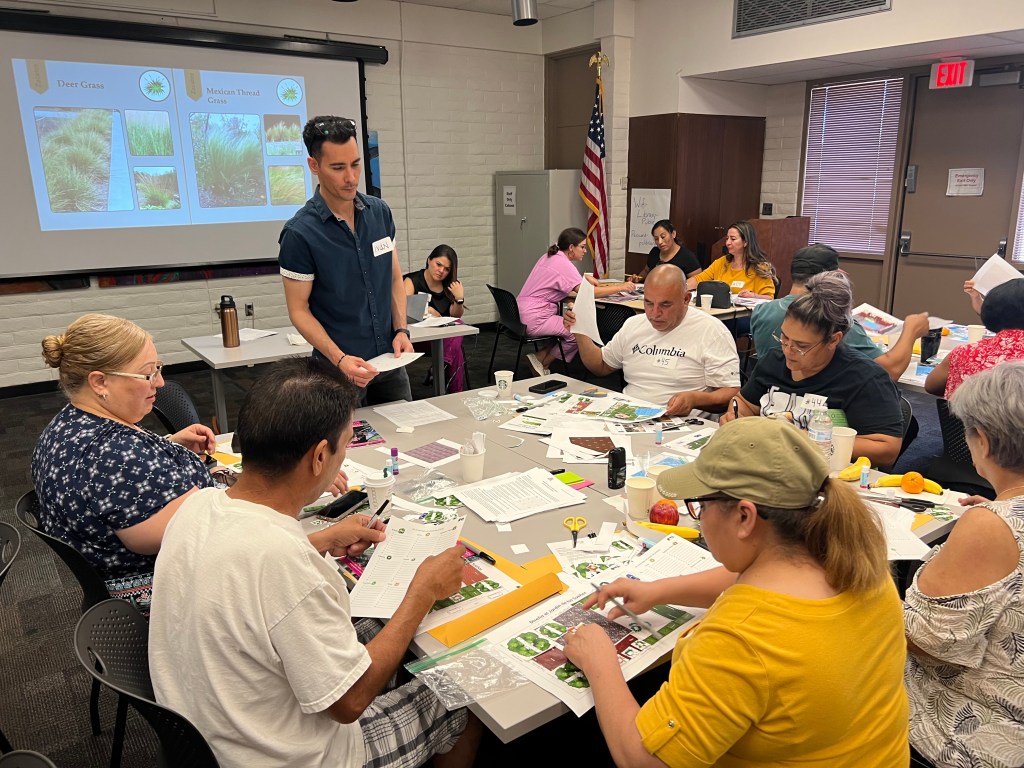 Low-income neighborhoods are priority areas for greening efforts, as these often lack vegetation and experience more heat and flooding than the rest of the city. However, not all plant choices deliver the same microclimate benefits. Communities may have different preferences, which directly affect the biophysical impacts and the ecosystem services derived from plants. This study seeks to fill this gap and broadly identify low-income communities’ preferences for greening in Tucson, and measure heat fluctuations, and impacts on the water and carbon cycle. We do this by conducting two workshops recruiting participants from disadvantaged communities in Tucson through a novel methodology based on gaming. We asked participants to design their dream garden to help us understand their plant preferences and expected ecosystem services.